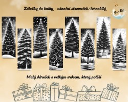 Záložka - vánoční stromeček černobílý (sada)