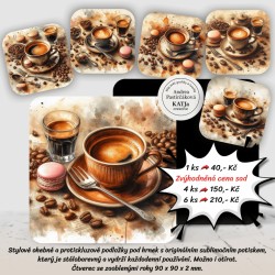 Stylové, kvalitní a hravé kuchyňské podložky pod nápoje s originálním sublimačním potiskem, který je stálobarevný a vydrží každodenní používání. Možno i otírat.